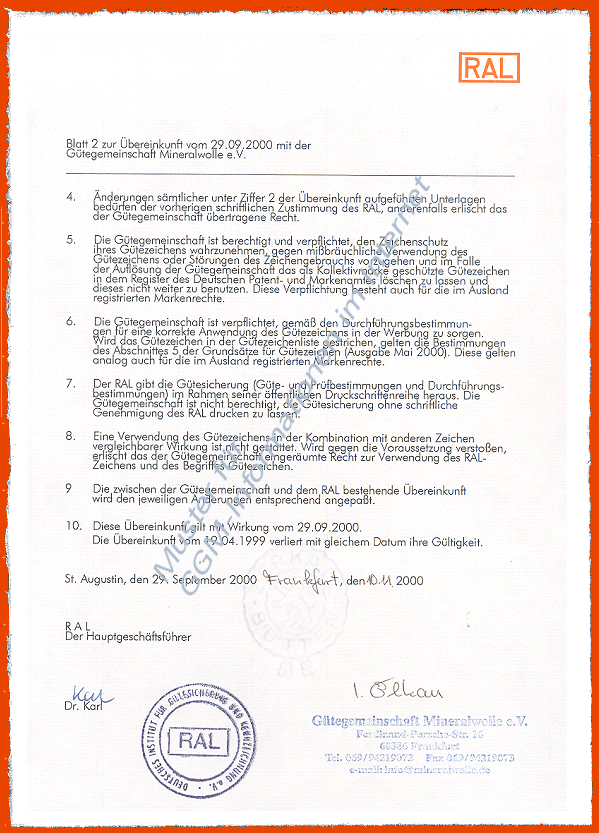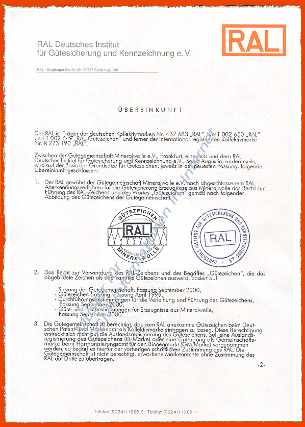 2. RAL Gütezeichen "Erzeugnisse aus Mineralwolle"