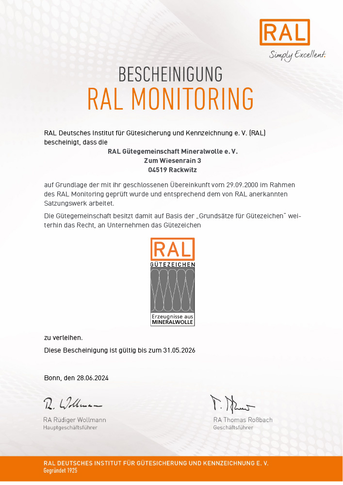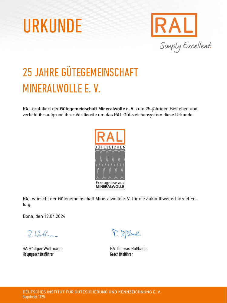 Auf den folgenden Seiten finden Sie daher weitere Informationen über uns und über das RAL Gütezeichen für Mineralwolle. Nur laufend geprüfte Dämmmaterialien dürfen hiermit ausgezeichnet werden. Dadurch sorgt die Gütegemeinschaft Mineralwolle kontinuierlich dafür, dass für gewerbliche wie private Anwender stets ein Qualitätsprodukt als Dämmmaterial für Wand, Dach und Decke angeboten wird.